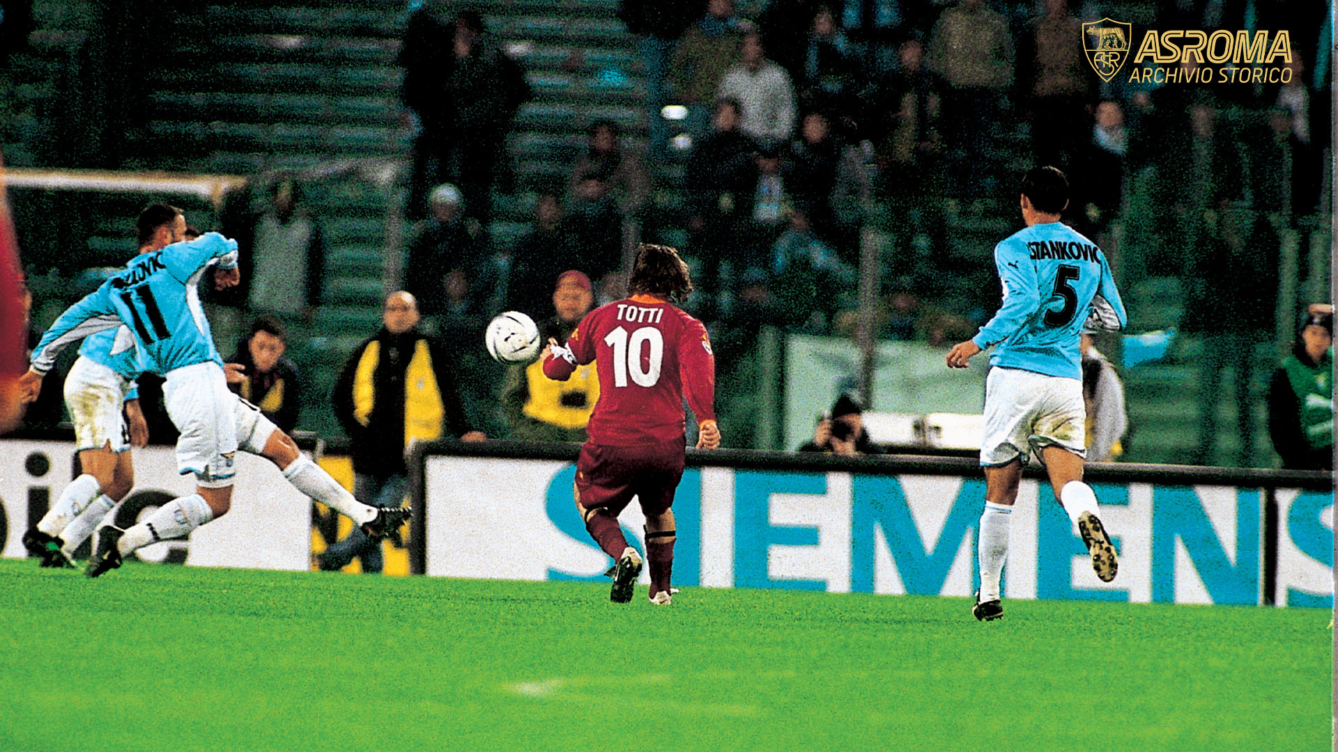 The Vincenzo Montella derby to some - the striker scoring four goals in a dominant performance for the Giallorossi. To others, perhaps, it is the Totti Chip derby - arguably the finest derby goal for the Giallorossi, scored by the No. 10 with an almost perfect touch. And then, the celebration: A 'sei unica' ('You are the one') t-shirt - dedicated to both his girlfriend (now wife) and to the club - that instantly became iconic.