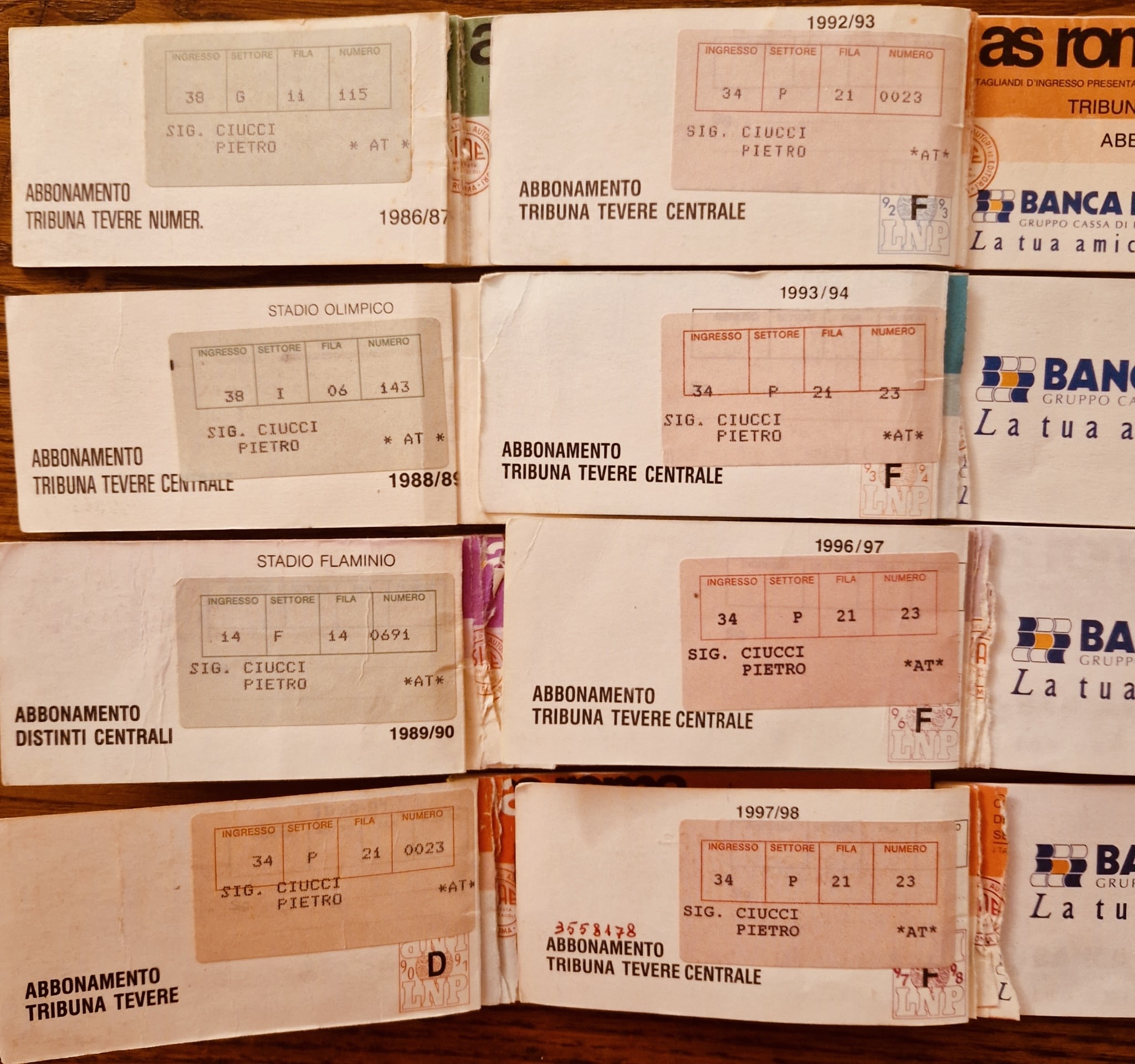 Once Pietro started going, he simply never stopped. As a boy, Dante Ghirighini would pick him up from his house: “He was a friend of my father. I’d hop on his Vespa and we’d go to the Curva Sud together.” As he grew older, Pietro moved to the stands on the side: “I had one year in Monte Mario, entrance number 10, and then in Tevere ever since.” Pietro continued to buy season tickets even after turning 60 when health issues began to arise.
